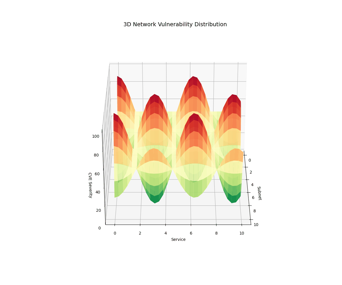 3. 3D Vulnerability Heatmap - CVE severity distribution across network subnets and services